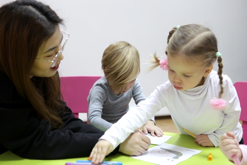 Дети 3-5 лет занимаются в группах с носителями китайского языка по 3 раза в неделю по 45 минут