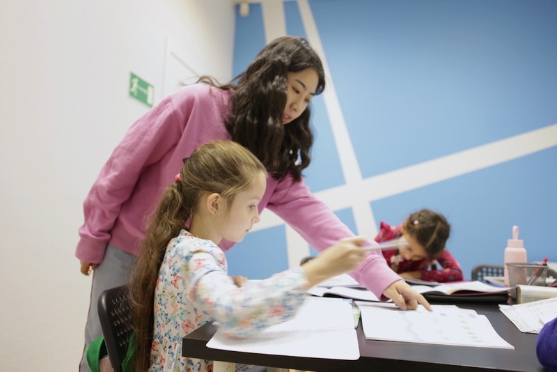С каждым учеником работает команда из русскоговорящего учителя и носителя китайского языка.